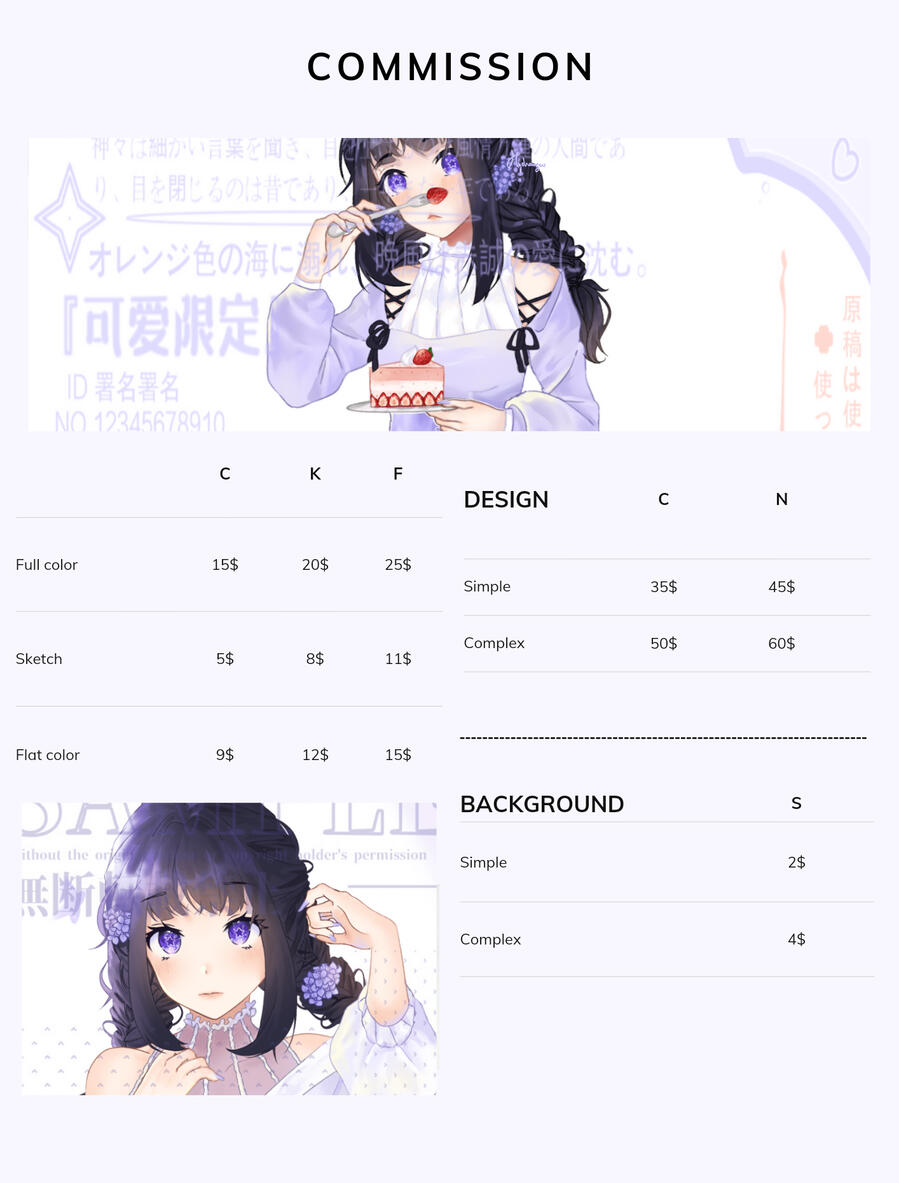 I said above that I don't draw 19+ paintings, more specifically, I don't take "hentai" orders, but I still accept NSFW drawings or something like that.Carefully read the notes I wrote down. When you place my commission, of course it means that you have fully accepted the above notes.